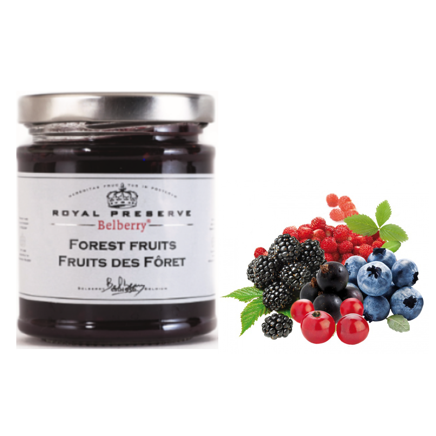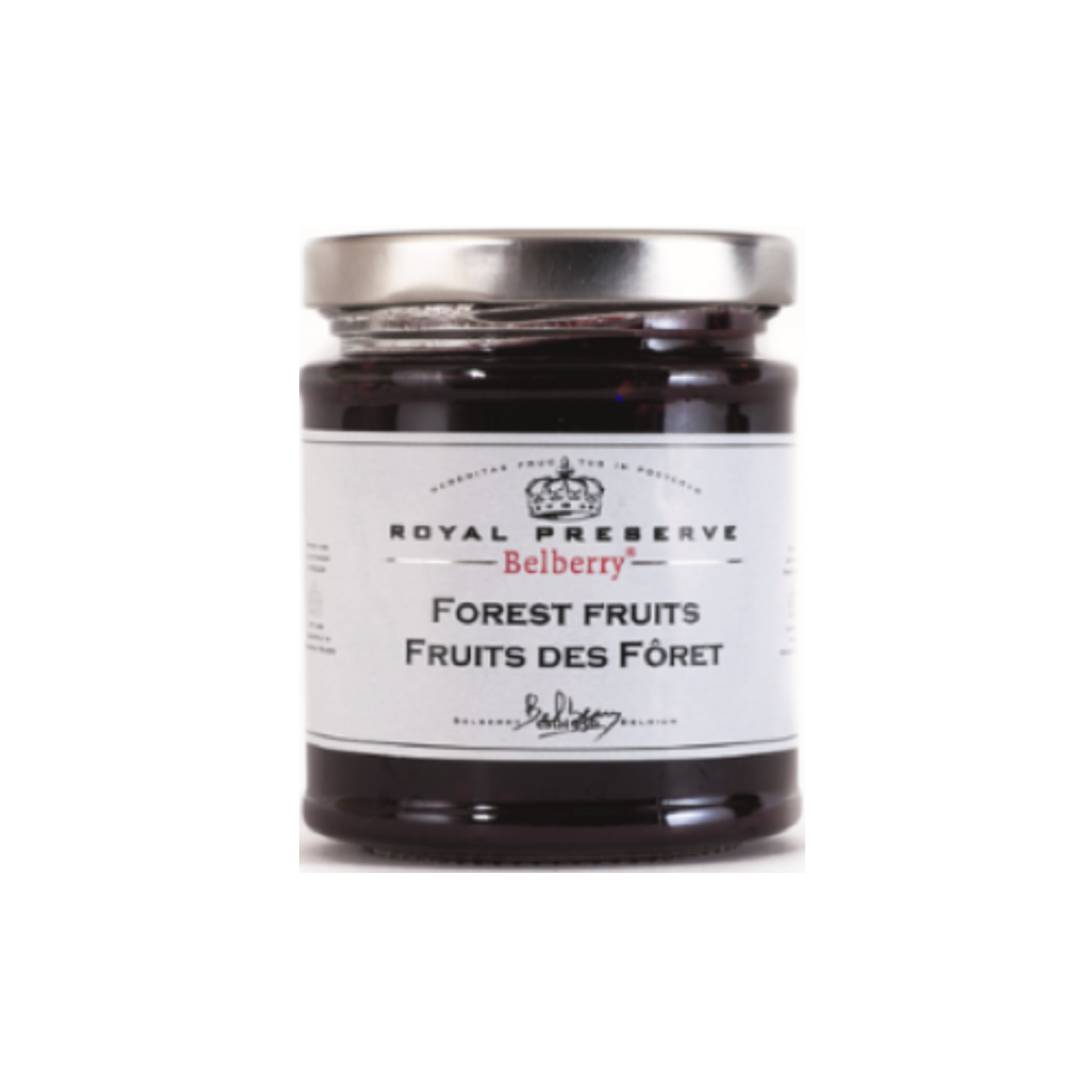 - “Forest Fruits”: confettura di frutti di bosco (fragola, ribes nero, ribes rosso, lamponi, more) realizzata sulla base di un’antica ricetta della tradizione belga che ne conserva il gusto inimitabile ed il delizioso aroma. Prodotto in Belgio (1 x 215 Grammi).