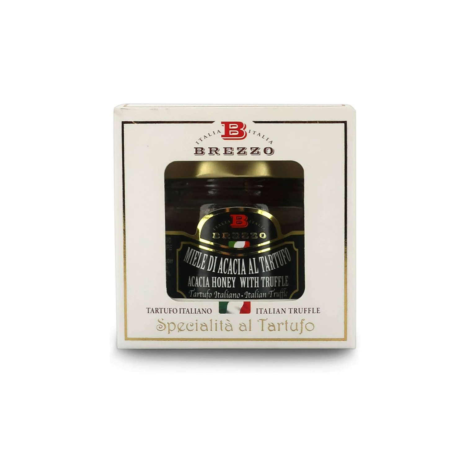 Brezzo | Vasetto Confezione Regalo Miel Acacia e Tartufo | Miel Acacia e Tartufo Italiano Abbinamento Formaggi Freschi o Stagionati – 100 Gr
