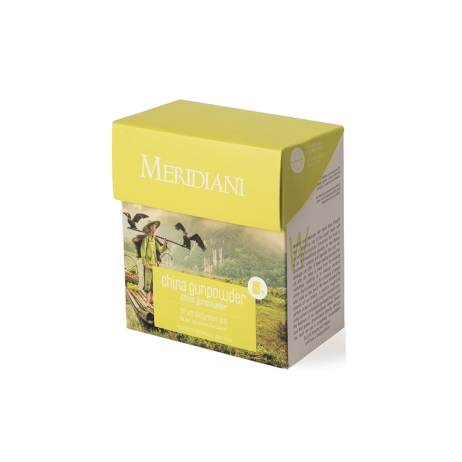 - “China Gunpowder”: astuccio con all’interno 15 infusori monodose biodegradabili, confezionati ognuno singolarmente, di tè verde cinese Gunpowder (15 filtri – 30 grammi). Confezionato in Italia.