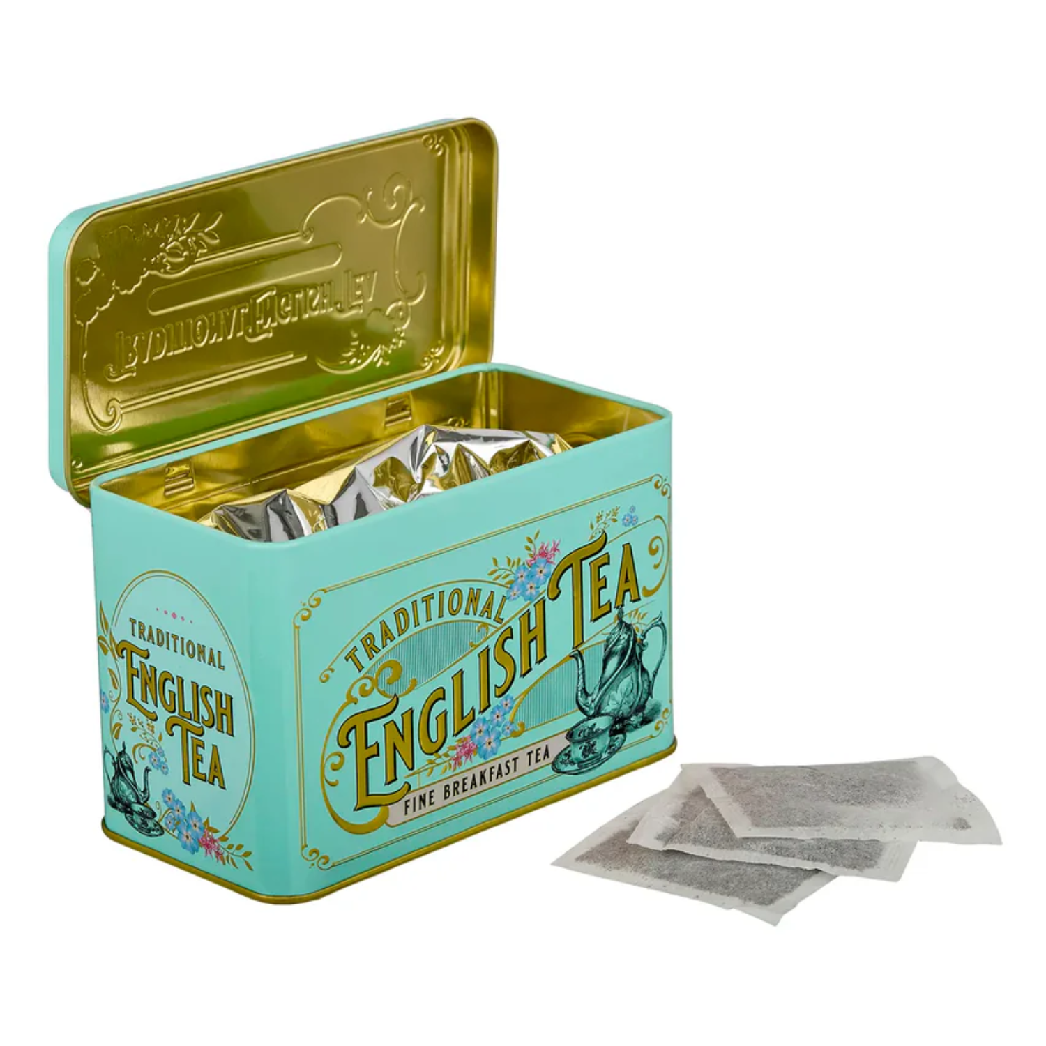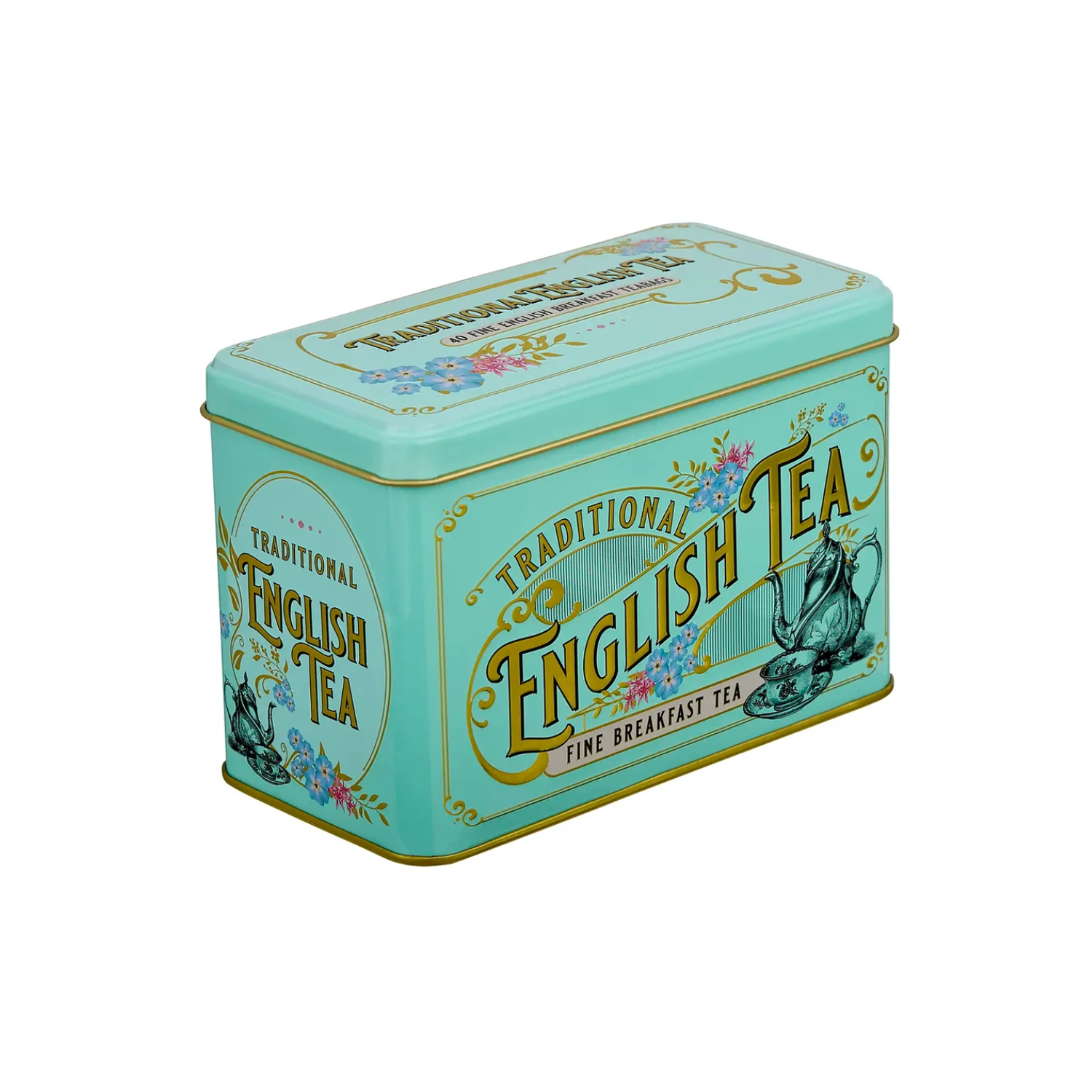 - “English Breakfast”: cofanetto regalo lattina di metallo apribile decorata a rilievo all’esterno, con all’interno 40 filtri di tè nero English Breakfast contenuti in un unico sacchetto (40 bustine – 80 grammi). Prodotto in Regno Unito.
