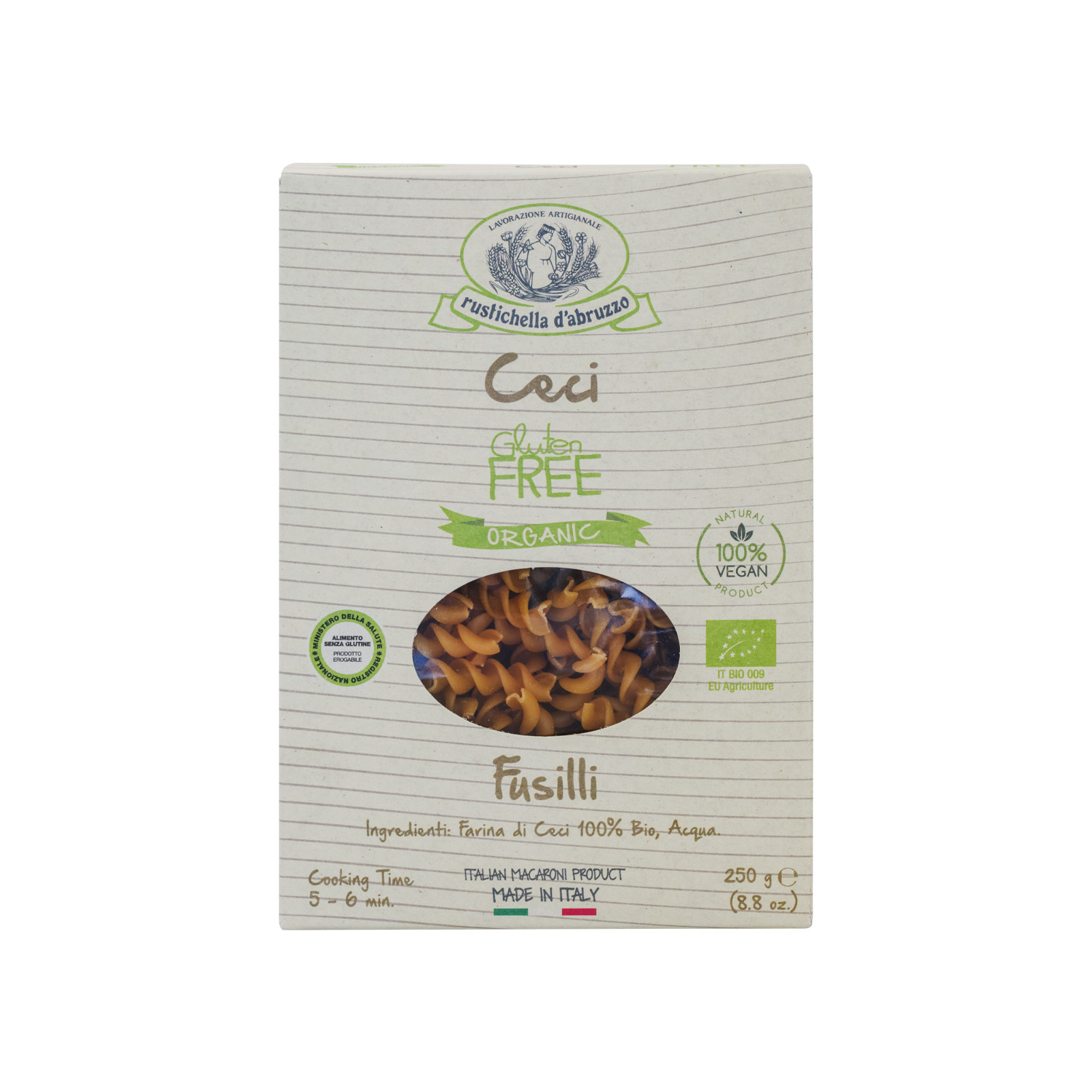 • “Fusilli”: fusilli a base di farina di ceci bio, senza glutine, ricchi di proteine vegetali e fonte di fibre, naturalmente vegani (1 x 250 grammi). Prodotto in Italia.